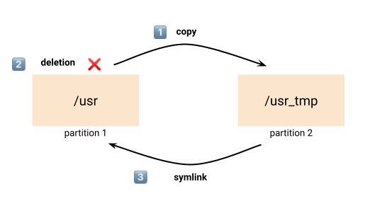 This solution is actually working for data folder, not for binaries, a not really for /usr.
