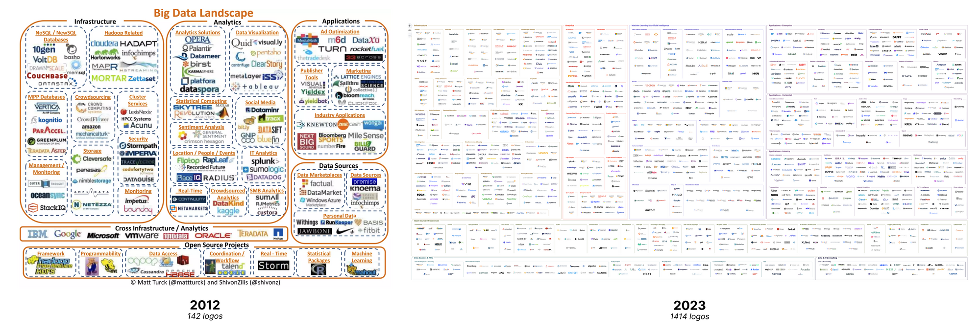 Year after year the MAD Landscape has become an important tool to index the whole data landscape. The choice of categories is also a very clear way to categorise companies and to capture how the data field is changing. Obviously this kind of index is opinionated and they—Matt and his team—make editorial choices when they decide to include—or not—a company, but still, their selection depicts a reality.
